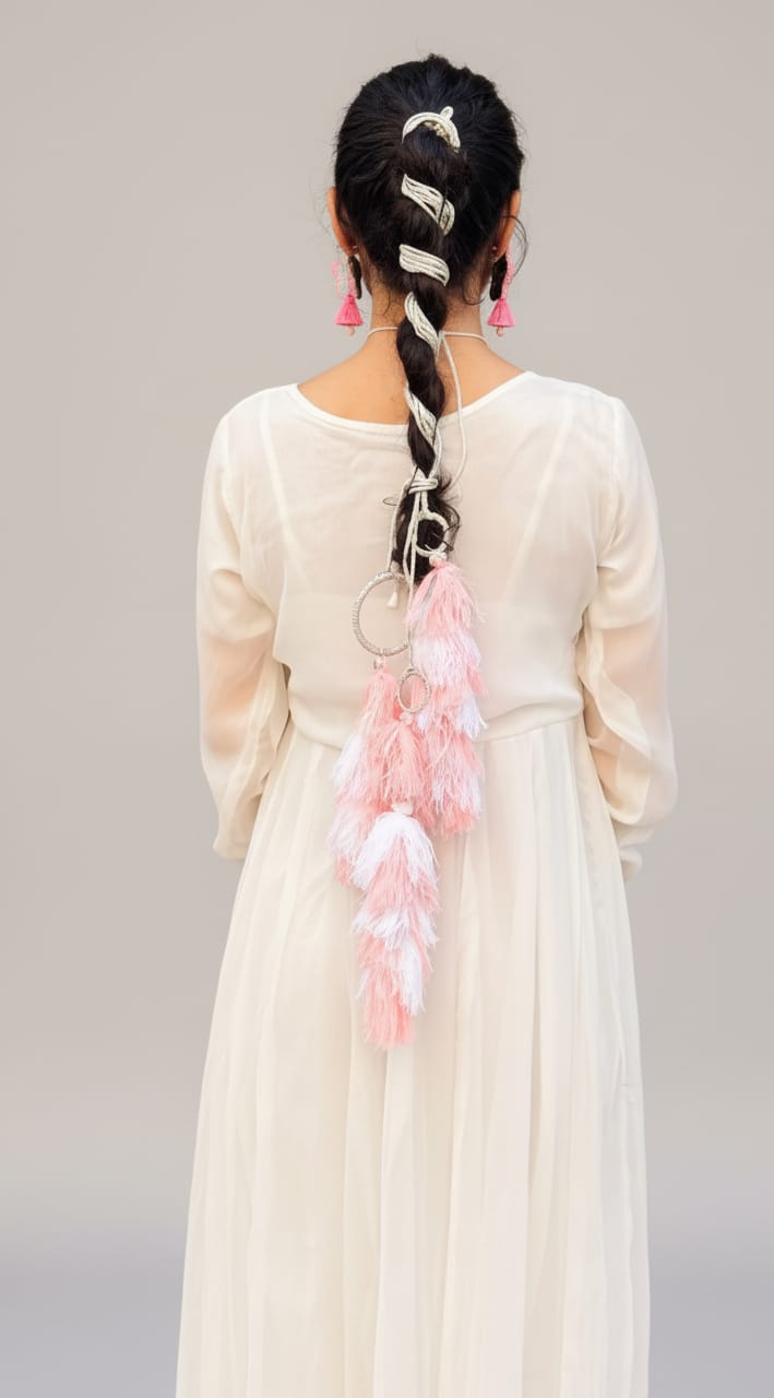 A celebration of pink, petals, and pure elegance β these handmade & stylish parandis are designed to make your braid bloom.